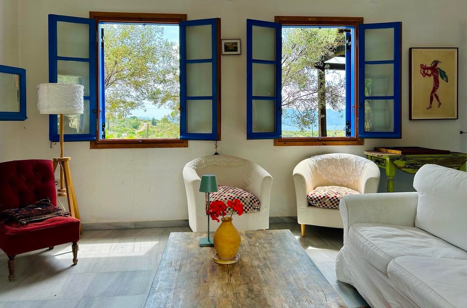 Book your stay at The Red House Holiday Rental. Located on the peaceful Pagoni hill just outside Aegina Town you will find The Red House. Relax and unwind in this beautiful family house with amazing sea views, surrounded by olive and pistachio groves. Just under 3 km from the town with its cafes, bars and tavernas, and even closer to lovely swimming spots, here you can really take your pick of Aegina’s many offerings.